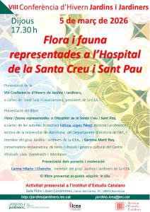 Flora i fauna representades a l’Hospital de la Santa Creu i Sant Pau, a càrrec de les autores, la doctora Fàtima López Pérez, doctora i professora lectora de la Universitat de Barcelona, del Departament d’Història de l’Art, i membre del grup Jardins i Jardiners de la ICEA, i Gemma Martí Rey, conservadora-restauradora de béns culturals i gestora cultural del Centre d’Estudis Lluís Domènech i Montaner.